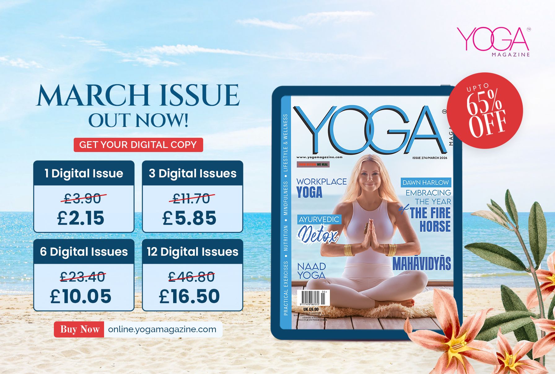 YOGA Magazine is the number one yoga, health and fitness brand in the UK and USA. A chic, contemporary publication specialising in yoga, wellbeing and natural living. Each issue is packed with celebrity interviews, organic and natural beauty, fashion, travel, food and the best of yoga and fitness.